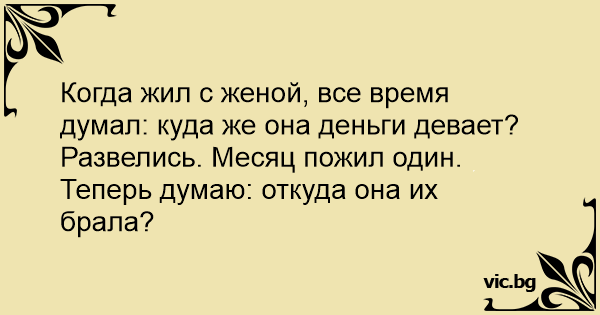 Развелись. Месяц пожил один. Теперь думаю: откуда она их брала?