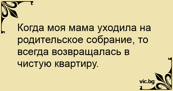 Когда моя мама уходила на родительское собрание, то всегда возвращалась в чистую квартиру.