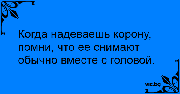 Когда надеваешь корону, помни, что ее снимают обычно вместе с головой.