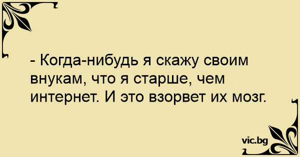 - Когда-нибудь я скажу своим внукам, что я старше, чем интернет. И это взорвет их мозг.