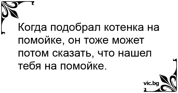 Когда подобрал котенка на помойке, он тоже может потом сказать, что нашел тебя на помойке.