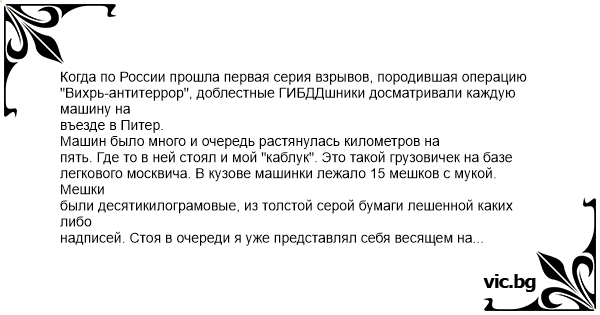 "он вез гексоген". Документы на муку, разумеется были, но гексоген то