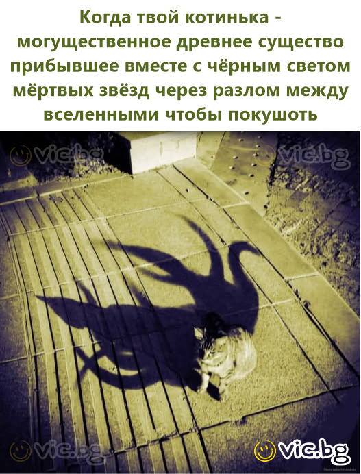 когато котето ти е могъщо древно същество, пристигнало с черната светлина на мъртви звезди през разлома между вселените, за да яде