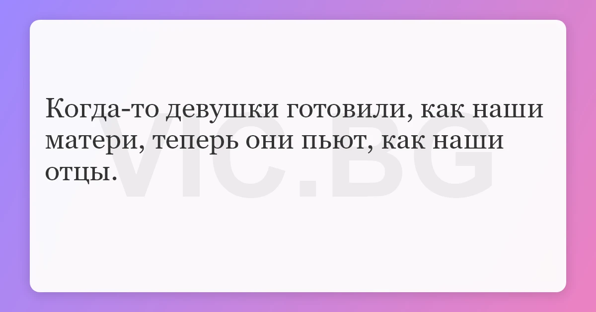 Когда-то девушки готовили, как наши матери, теперь они пьют, как наши отцы.