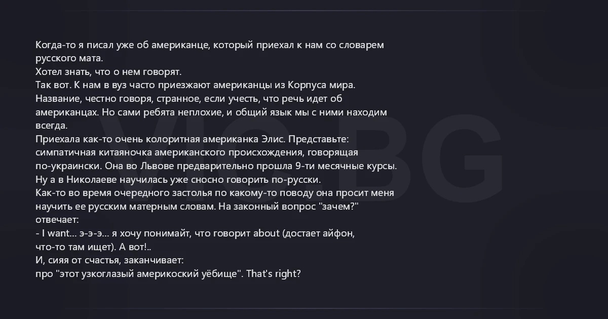 Так вот. К нам в вуз часто приезжают американцы из Корпуса мира.