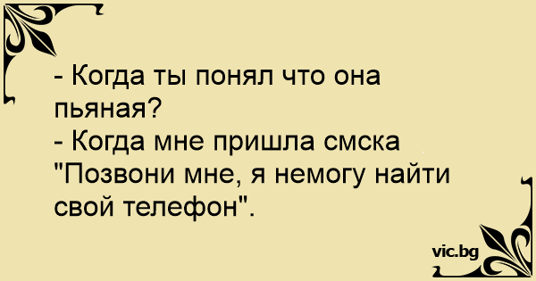 - Когда ты понял что она пьяная?<br />- Когда мне пришла смска "Позвони мне, я немогу найти свой телефон".