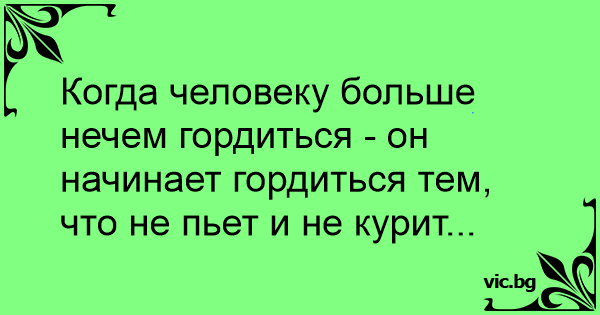 Когда человеку больше нечем гордиться - он начинает гордиться тем, что не пьет и не курит...