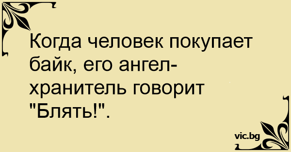 Когда человек покупает байк, его ангел-хранитель говорит "Бляtь!".