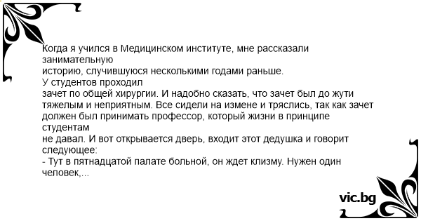 Когда я учился в Медицинском институте, мне рассказали занимательную историю, случившуюся несколькими годами раньше.