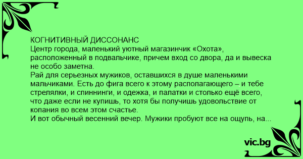 КОГНИТИВНЫЙ ДИССОНАНС Центр города, маленький уютный магазинчик «Охота», расположенный в подвальчике, причем вход со двора, да и вывеска не особо заметна.