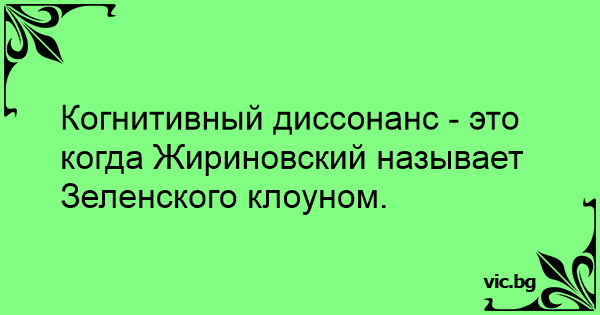 Когнитивный диссонанс - это когда Жириновский называет Зеленского клоуном.