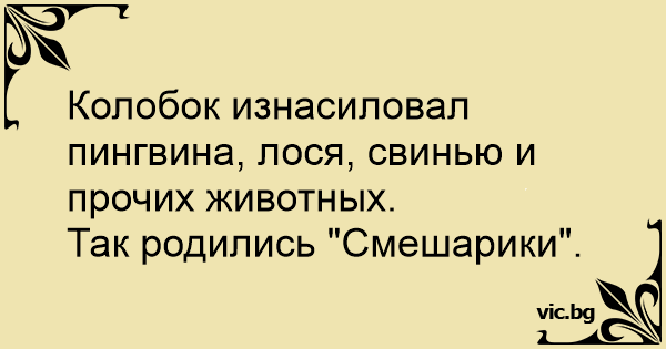 Колобок изнасиловал пингвина, лося, свинью и прочих животных.