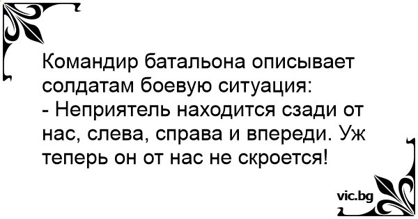 - Неприятель находится сзади от нас, слева, справа и впереди. Уж теперь он от нас не скроется!