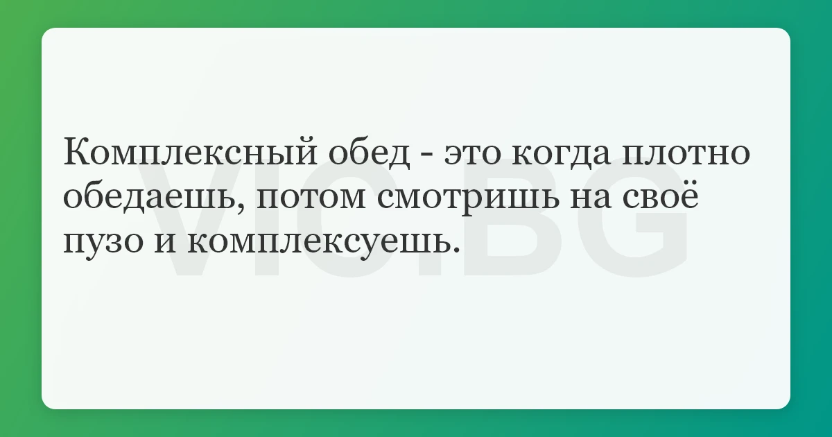 Комплексный обед - это когда плотно обедаешь, потом смотришь на своё пузо и комплексуешь.