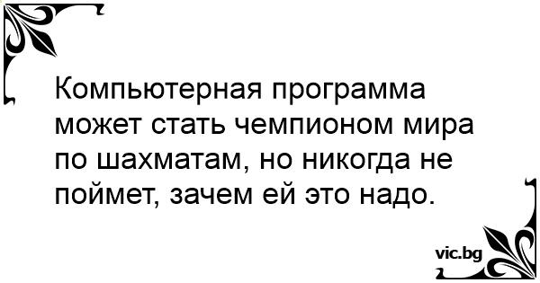 Компьютерная программа может стать чемпионом мира по шахматам, но никогда не поймет, зачем ей это надо.