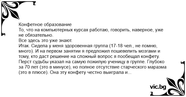 Конфетное образование То, что на компьютерных курсах работаю, говорить, наверное, уже не обязательно.