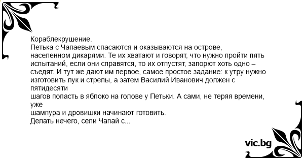 изготовить лук и стрелы, а затем Василий Иванович должен с пятидесяти