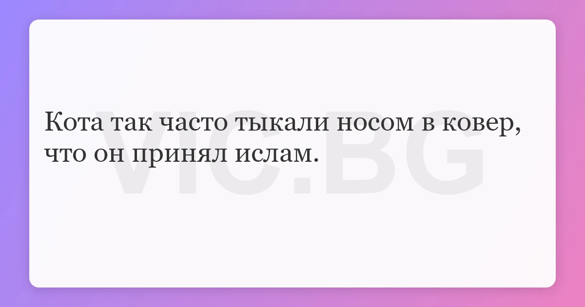 Кота так часто тыкали носом в ковер, что он принял ислам.