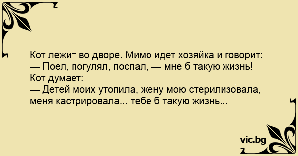Кот лежит во дворе. Мимо идет хозяйка и говорит: