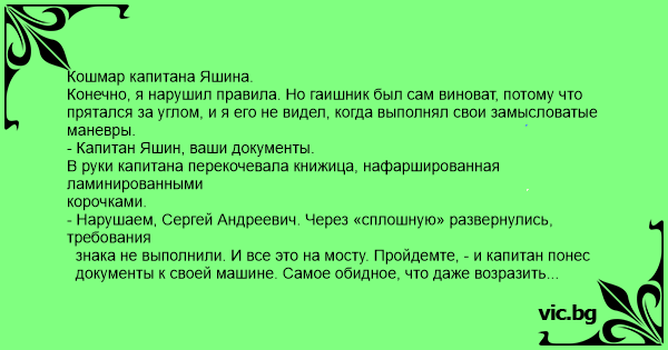 - Капитан, я нарушил правила и готов ответить по всей строгости закона.