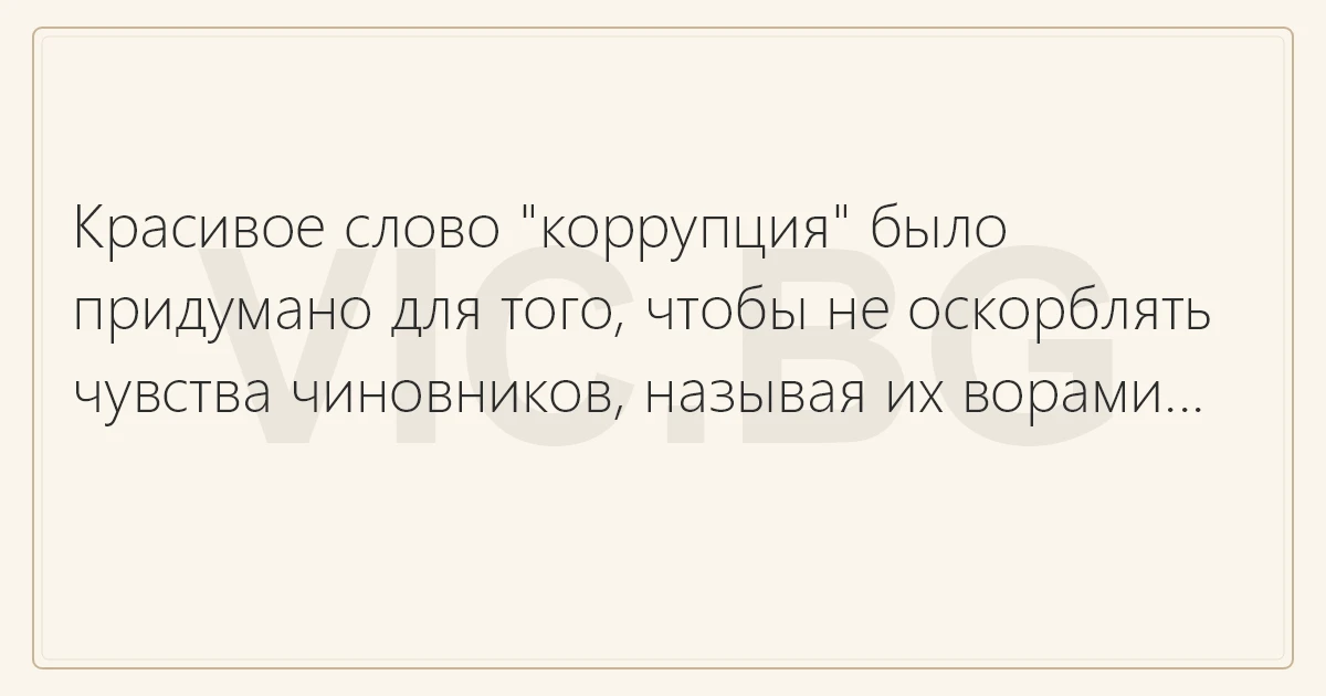 Красивое слово "коррупция" было придумано для того, чтобы не оскорблять чувства чиновников, называя их ворами...