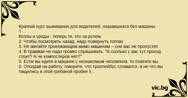 Краткий курс выживания для водителей, оказавшихся без машины 1.