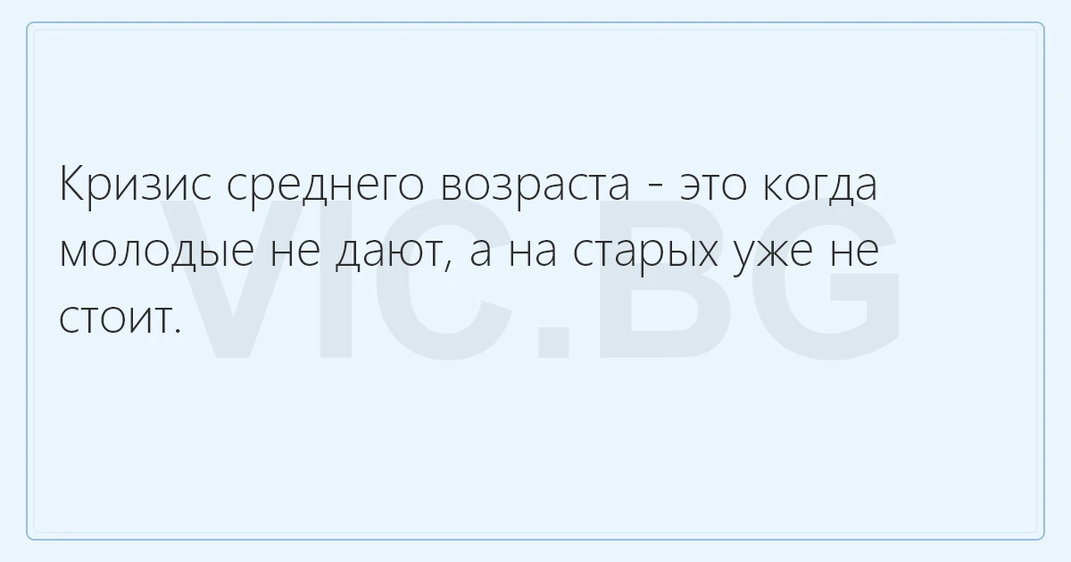 Кризис среднего возраста - это когда молодые не дают, а на старых уже не стоит.