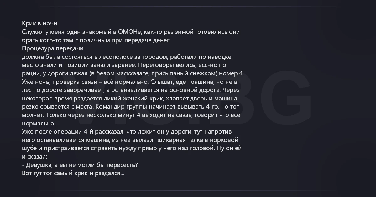 Уже ночь, проверка связи – всё нормально. Слышат, едет машина, но не в