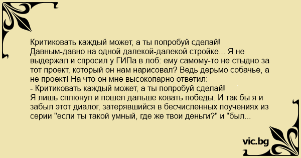 Давным-давно на одной далекой-далекой стройке... Я не выдержал и спросил у ГИПа в лоб: ему самому-то не стыдно за тот проект, который он нам нарисовал? Ведь дepьmo собачье, а не проект! На что он мне высокопарно ответил: