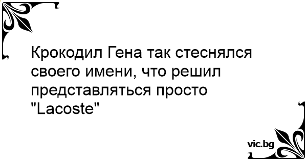 Крокодил Гена так стеснялся своего имени, что решил представляться просто "Lacoste"