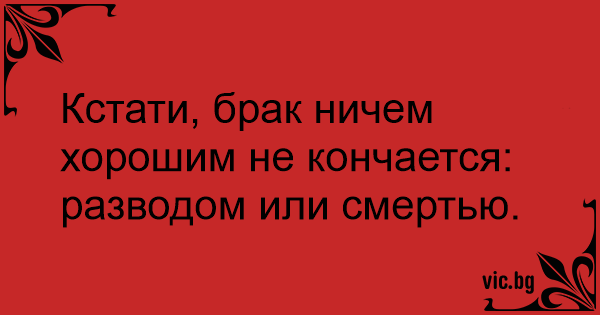 Кстати, брак ничем хорошим не кончается: разводом или смертью.