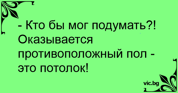 - Кто бы мог подумать?! Оказывается противоположный пол - это потолок!