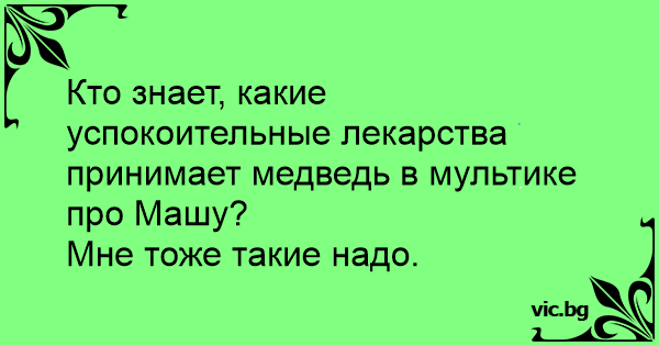Някои знае ли какви успокоителни пие мечката в "Маша и мечока"? Точно такива ми трябват!