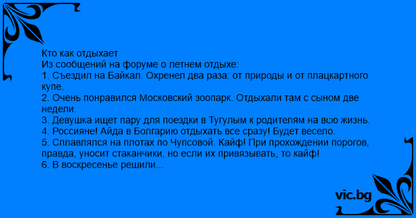 Кто как отдыхает Из сообщений на форуме о летнем отдыхе: