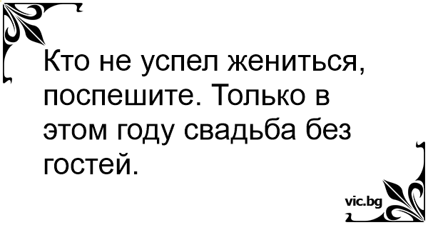 Кто не успел жениться, поспешите. Только в этом году свадьба без гостей.