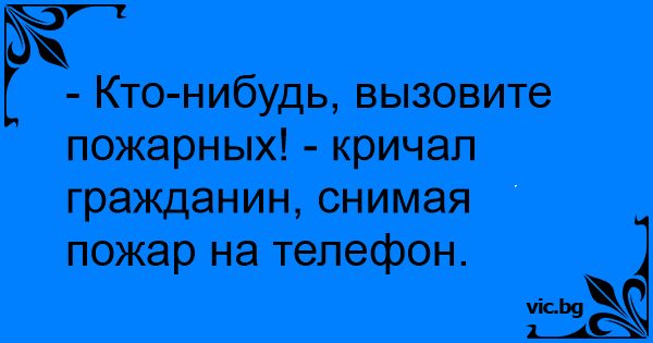 - Кто-нибудь, вызовите пожарных! - кричал гражданин, снимая пожар на телефон.