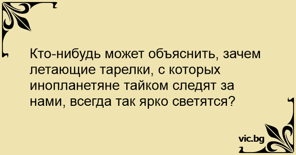 Кто-нибудь может объяснить, зачем летающие тарелки, с которых инопланетяне тайком следят за нами, всегда так ярко светятся?