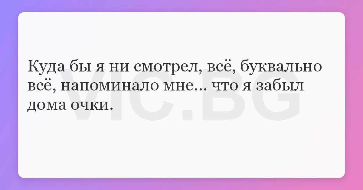 Куда бы я ни смотрел, всё, буквально всё, напоминало мне... что я забыл дома очки.
