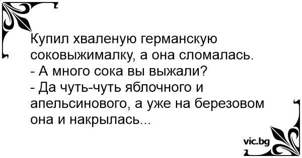 Купил хваленую германскую соковыжималку, а она сломалась.