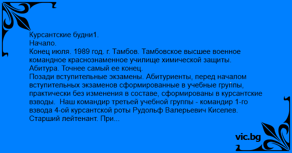 - ну ладно, я с тобой поговорить хотел знаешь о чем? Ты, Миша, за месяц абитуры командовал группой. Я тебя практически наугад назначил. Вроде лицо с тенью интеллекта, да и ростом Бог не обидел. И угадал наверное. Абитуриенты тебя слушались. Я поначалу не понял почему они твои команды и распоряжения выполняют мгновенно. Вроде в других группах, все как обычно. Старшего слушаются через раз. А у тебя как будто курсанты уже. Молча и не задавая лишних вопросов. Все. До единого. Но потом загадка разгадалась (долгий испытующий немигающий взгляд исподлобья). Почитал твою анкету сначала, а потом запрос сделал через особый отдел в Тамбовское ГУВД. В анкете-то у тебя все отлично! Комсомолец, члeн комитета комсомола, ответственный за военно-патриотический сектор в школе, спортивные разряды по боксу, дзю-до, стрельбе и плаванию, аттестат со средним баллом в 4,3.... Но вчера пришел ответ на запрос. В период с 1986 по 1988 год более 30 приводов в милицию. Поводы всегда одинаковые - драка или нарушение общественного порядка. Иногда массовая в которой зачинщик ты. В 1986 причинил тяжкие телесные повреждения однокласснику. Сотрясение мозга с частичной потерей памяти. А на абитуре, во второй группе, есть тот, кто рассказал о твоей "легендарной личности" в курилке во время перекура. Ну а потом сработало сарафанное радио. У меня к тебе два вопроса. Первый: как тебе удалось все это при поступлении в училище скрыть? Ведь перед мандатной комиссией с документами из военкомата приходят справки о приводах и судимостях из милиции.