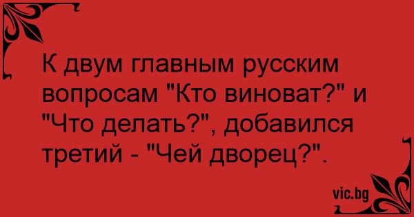 К двум главным русским вопросам "Кто виноват?" и "Что делать?", добавился третий - "Чей дворец?".