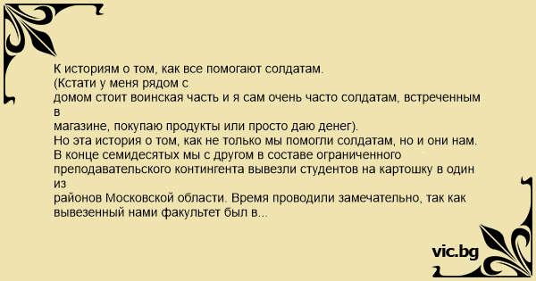 Но эта история о том, как не только мы помогли солдатам, но и они нам.