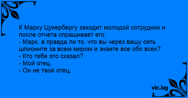 - Марк, а правда ли то, что вы через вашу сеть шпионите за всем миром и знаете все обо всех?