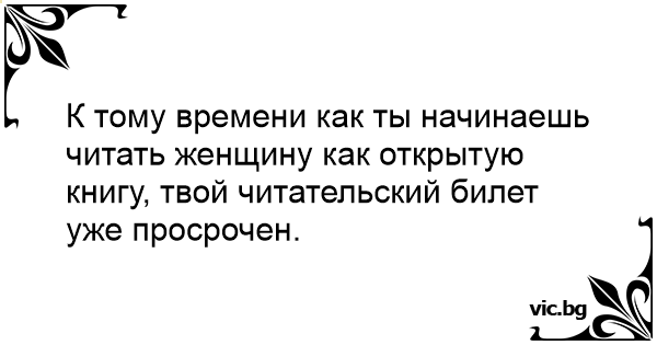 К тому времени как ты начинаешь читать женщину как открытую книгу, твой читательский билет уже просрочен.