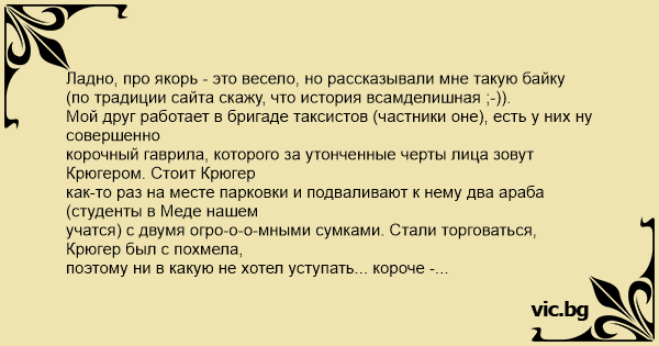 учатся) с двумя огро-о-о-мными сумками. Стали торговаться, Крюгер был с похмела,