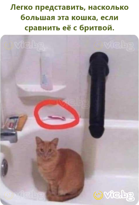 Лесно можете да си представите колко голяма е тази котка, като я сравните със самобръсначката. Лесно можете да си замислите колку е голема оваа мачка ако ја споредите со жилетката. Look at the razor to realize how big that cat is! ¡Mira la maquinilla para darte cuenta de lo grande que es ese gato! Schau dir den Rasierer an, um zu begreifen, wie groß diese Katze ist! Regarde le rasoir pour te rendre compte à quel point ce chat est grand ! Κοίτα το ξυραφάκι για να καταλάβεις πόσο μεγάλος είναι αυτός ο γάτος! Guarda il rasoio per renderti conto di quanto è grande quel gatto! O tıraşa bak, o kedinin ne kadar büyük olduğunu anlayacaksın! Легко уявити, наскільки великий цей кіт, якщо порівняти його з бритвою. Olha para a lâmina para perceberes o quão grande é aquele gato! Łatwo wyobrazić sobie, jak duży jest ten kot, porównując go z maszynką do golenia. Titta på rakhyveln för att inse hur stor den där katten är! Kijk naar het scheermes om te beseffen hое groot die kat is! Se på barberbladet for at forstå, hvor stor den kat er! Se på barberhøvelen for å innse hvor stor den katten er! Katso partahöylää ymmärtääksesi, kuinka suuri tuo kissa on! Nézd meg a borotvát, hogy lásd, milyen hatalmas az a macska! Uită-te la lamă ca să-ți dai seama cât de mare este pisica aceea! Snadno si lze představit, jak velká je ta kočka, když ji porovnáš s holicím strojkem. Pažiūrėk į skutimosi peiliuką, kad suprastum, koks didelis tas katinas! Paskaties uz skuvekli, lai saprastu, cik liels ir tas kaķis! Lako je zamisliti koliko je ova mačka velika ako je usporediš s britvicom.