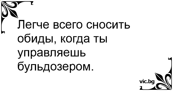 Легче всего сносить обиды, когда ты управляешь бульдозером.