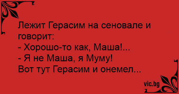 Лежит Герасим на сеновале и говорит: