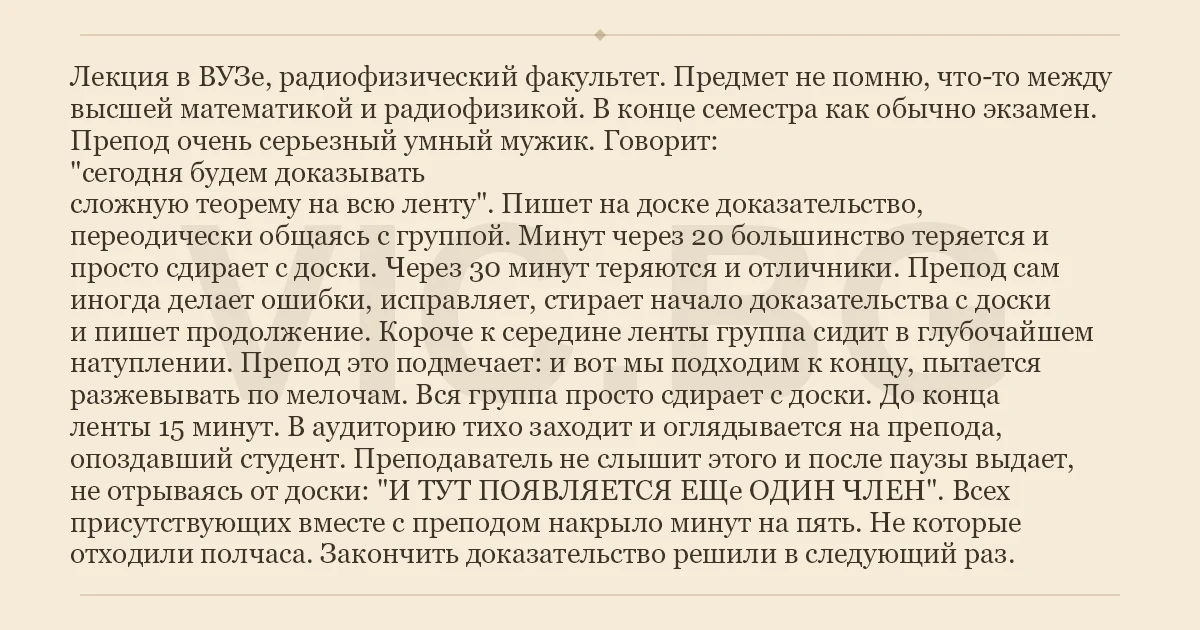Препод очень серьезный умный мужик. Говорит: