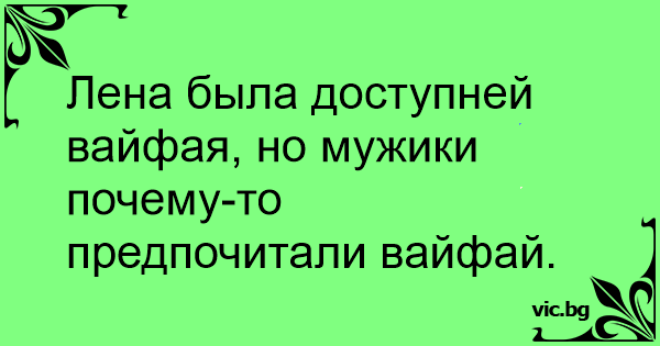 Лена была доступней вайфая, но мужики почему-то предпочитали вайфай.